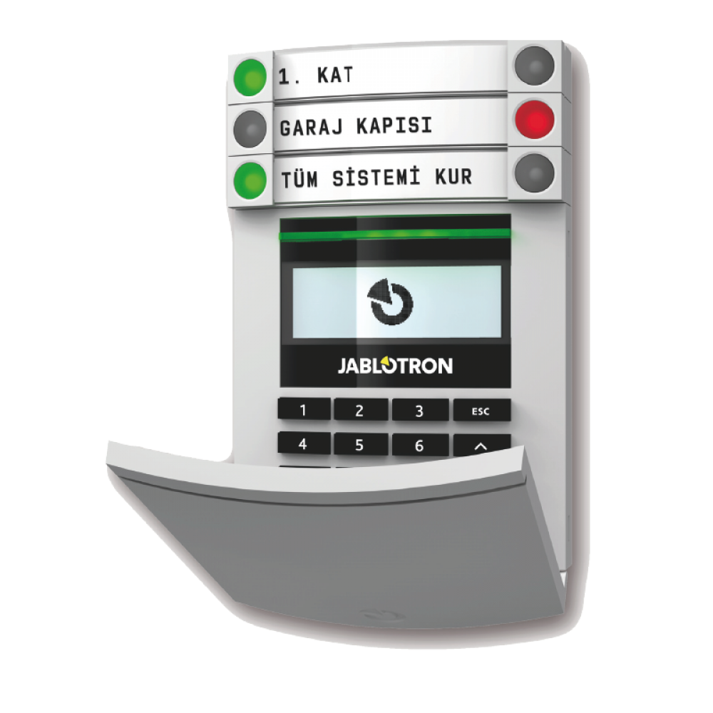 - JA-154E alarm sistemini kontrol etmek için tasarlanmış iki yönlü kablosuz haberleşme yapan RFID okuyucu LCD ekranlı bir Keypad ’dir.