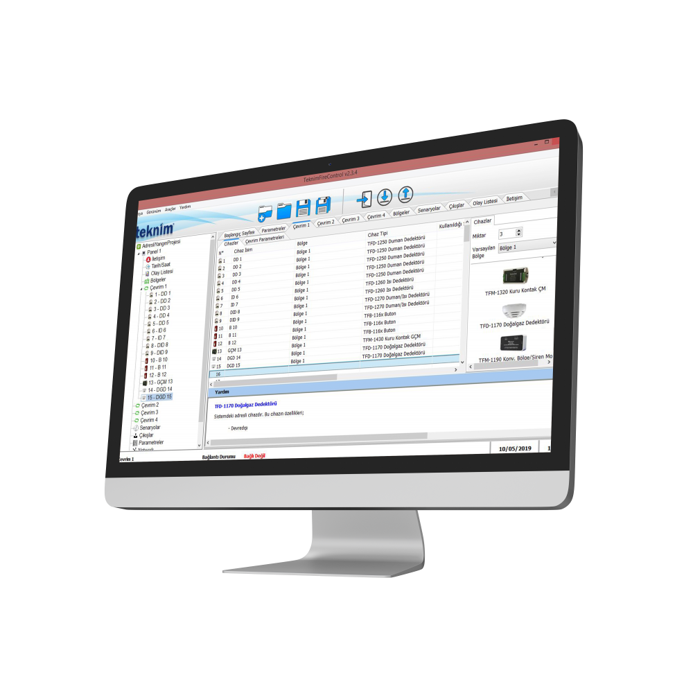 - Çoklu dil desteği (Türkçe, İngilizce) TFY-1000, kurulum firmaları için tasarlanmış Teknim adresli yangın algılama sistemleri yapılandırma yazılımıdır.